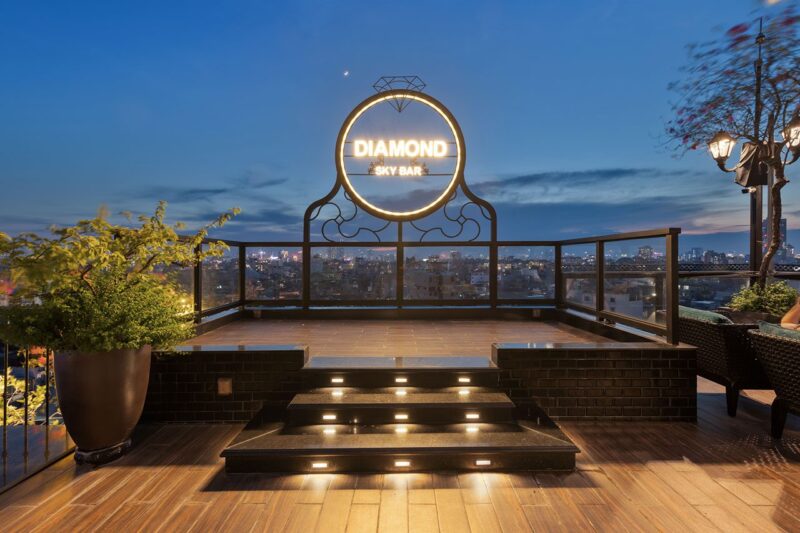 Parmi les rooftop bars à Hanoï, le Diamond Sky Bar se distingue par sa carte de cocktails originale et travaillée. À tester : le “Litchi & Smoke”, servi sous un dôme de vapeur pour une expérience à la fois visuelle et gustative.