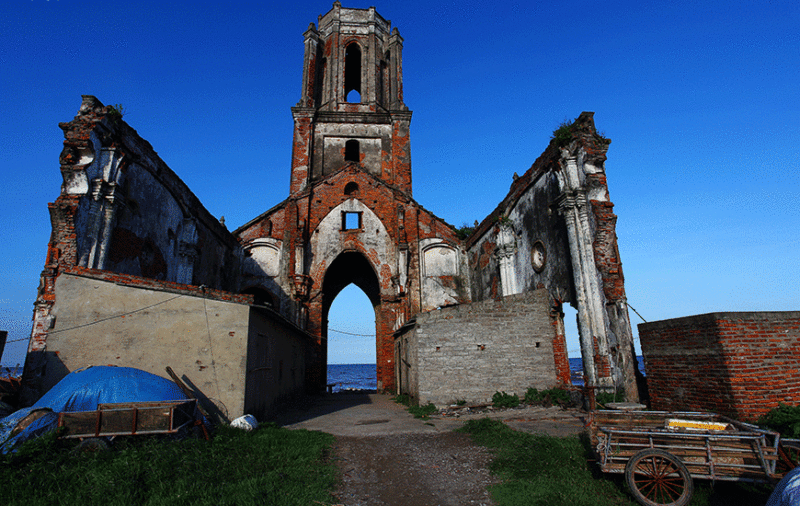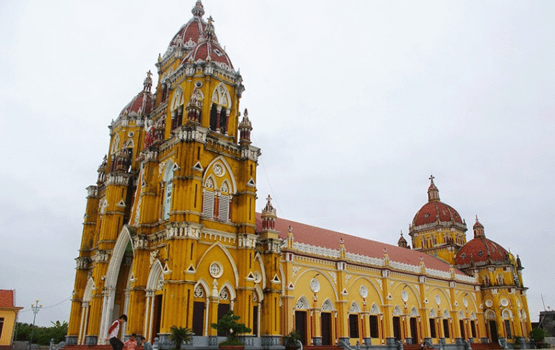 Reprenez le bac et la route principale, et continuez vers le Sud en direction de Yen Dinh. En chemin, vous apercevez nombre d’églises de belles factures comme dans le village de Xuan Truong. Peu avant Yen Dinh prendre la route à gauche en direction de la commune de Ha Ly située sur le littoral de Xuong Dien. Longez les marais salants puis prenez à gauche lorsque vous arrivez sur la route du bord de mer. Là, vous avez la vision étonnante d’une église en ruine sur la plage. Le site rassemblait autrefois un ensemble d’églises. Mais les hautes marées, la montée du niveau de la mer et les tempêtes les ont détruites. Il ne reste plus que l’église du Cœur (Trái Tim), sérieusement endommagée elle aussi par les tempêtes. Ces lieux dégagent une atmosphère fantasmagorique saisissante.