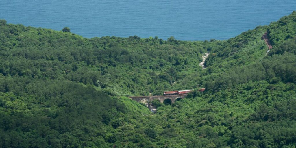 La gare de Danang est une étape sur la ligne reliant Hanoï à Hô Chi Minh-Ville. Le trajet en train est une expérience authentique, notamment sur la portion Hué-Danang, offrant des paysages spectaculaires le long de la côte et à travers les montagnes.
