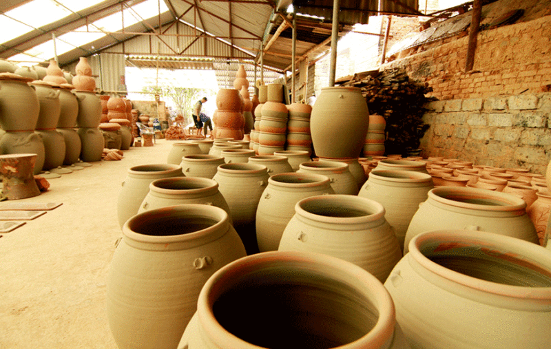 Bat Trang peut se traduire comme « qui fabrique des bols », « atelier de bols » ou encore « des cent fours »), domine désormais le commerce de la céramique artisanale dans le nord du Vietnam. Selon une légende populaire, en 1100, un homme a appris aux villageois à fabriquer des céramiques. Et au début, ils ne faisaient que des céramiques blanches et tout à la main. Au fil du temps, les produits céramiques ont de plus en plus variés, notamment avec de la terre rouge, couverte d’argile blanche, sous différentes formes et couleurs.