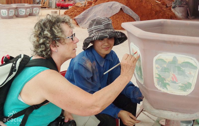 Bat Trang, situé au bord du fleuve Rouge, a une quinzaine de kilomètres de Hanoi (de l’autre côté, sur la rive gauche), est le village de potiers le plus ancien et le plus connu du Vietnam.… C’est le village de céramistes le plus réputé du delta du fleuve Rouge avec tout le talent de ses artisans, qui se transmettent leur savoir-faire depuis plusieurs générations.